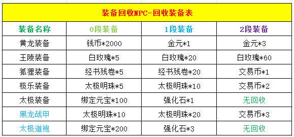 1:装备回收NPC,可回收1-2段装备: