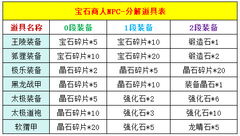 3:宝石商人NPC,可将各种0-2段装备,回收为相应的宝石: