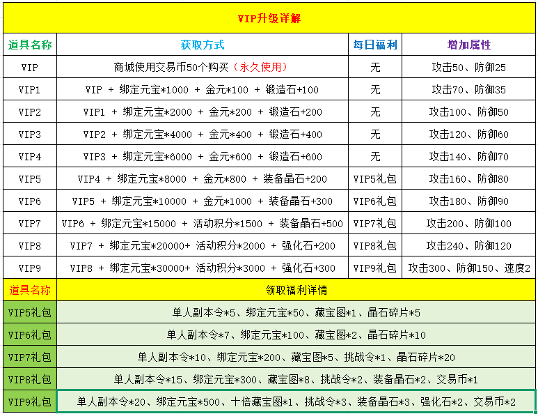 4:VIP可在技能栏内升级,升级后增加属性与福利;